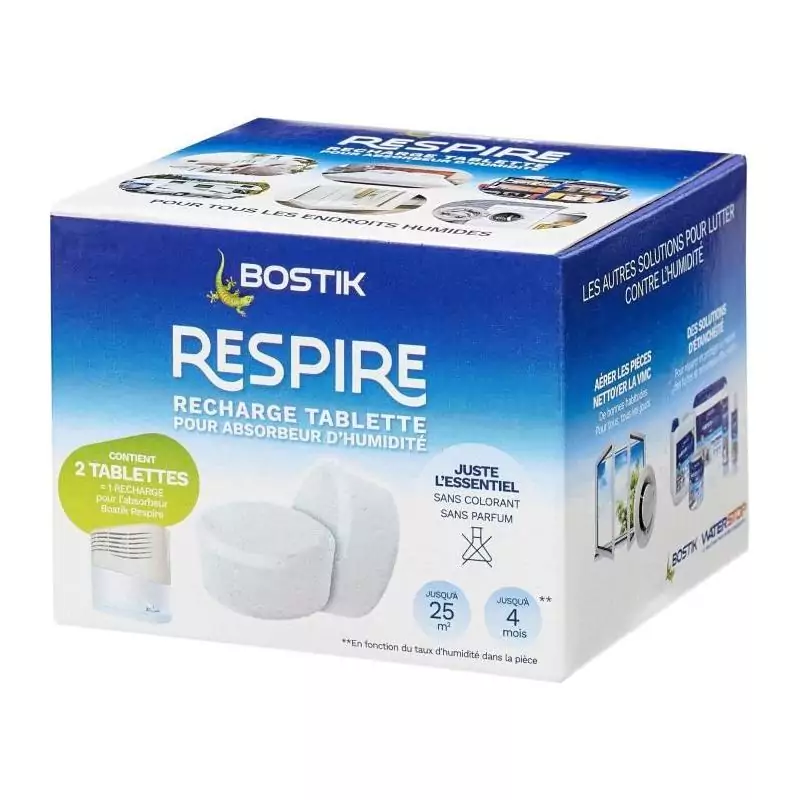 Recharges absorbeur - BOSTIK - Respire - 2 tablettes - Jusqu'a 25 m² - Sans parfum - 2 x 250 g