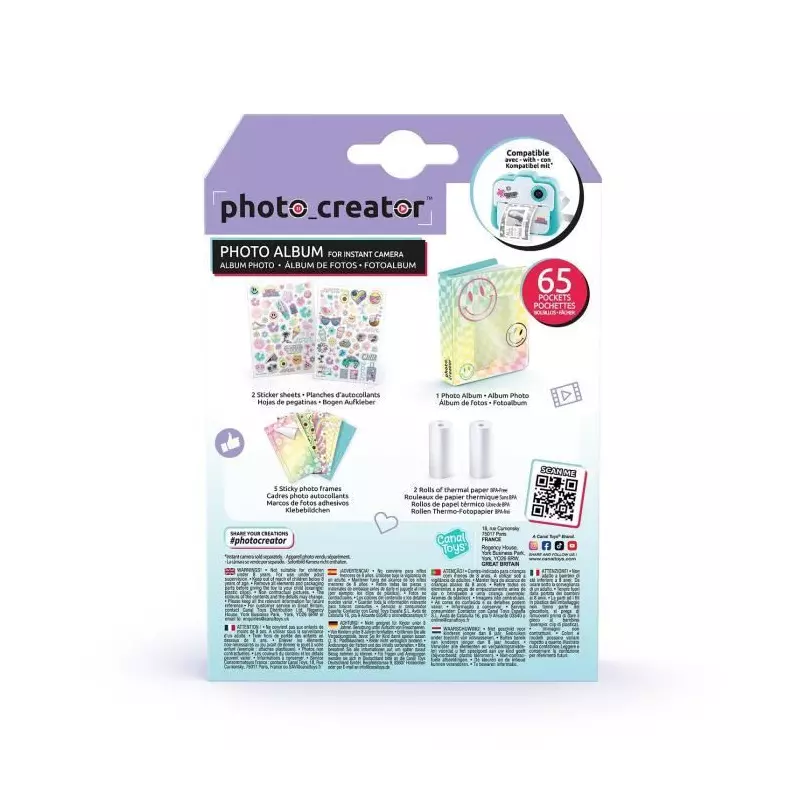 Avec le Coffret Album Photo pour appareil photo à impression instantanée de Canal Toys, les enfants pourront donner vie à leurs clichés en les imprimant instantanément. Ils pourront ainsi voir leurs photos prendre forme sous leurs yeux émerveillés et les insérer directement dans leur album, pour un souvenir tangible et durable.