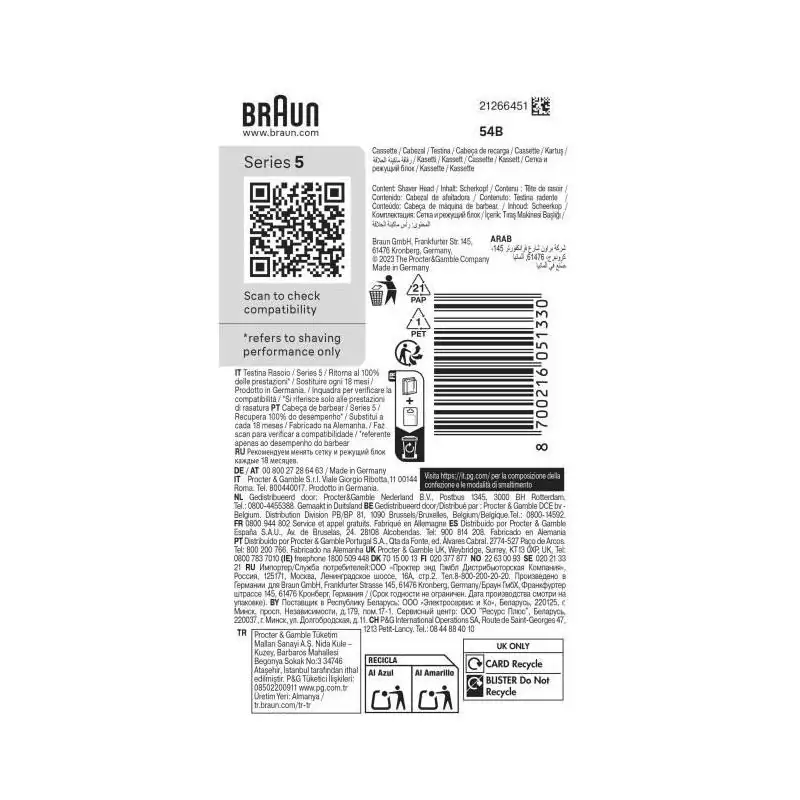 Tete de rasoir BRAUN Series 5 & 6 - 3 lames flexibles - 100 % fabriqué en Allemagne