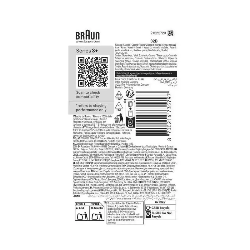 Tete de rasoir BRAUN Series 3+ - 2 grilles - Peigne MicroComb - 100 % fabriqué en Allemagne