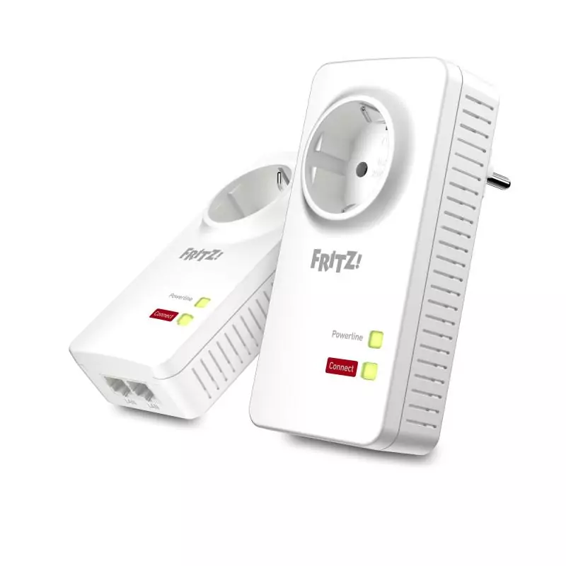 Powerline catégorie 1200 Le kit FRITZ!Powerline 1220E permet une connexion rapide et fiable des équipements réseau comme les ordinateurs, la télévision ou les consoles de jeux même sur des distances élevées au sein du réseau domestique. Deux ports LAN Gigabit à haut débit sont disponibles pour chaque adaptateur. La liaison via le circuit électrique permet de s'affranchir des grandes distances ainsi que des obstacles tels que les murs et les plafonds. Contrairement aux adaptateurs Powerline de catégorie 500 et 200-MBit/s FRITZ!Powerline 1220E offre une capacité de transmission nettement supérieure et des connexions plus robustes, le tout associé à une efficacité énergétique élevée. Ainsi, plusieurs applications de bande passante exigeantes sont exploitables en parallèles.