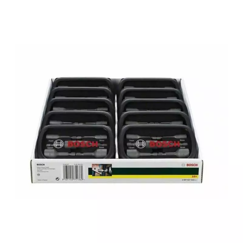 Le lot d'embouts à emmanchement 6 mm, 7 mm, 8 mm, 10 mm, 12 mm, 13 mm Bosch Accessories Promoline 2607017313 Propulseur 1 est un ensemble polyvalent et essentiel pour tout bricoleur ou professionnel. Ces embouts de haute qualité sont conçus par Bosch Accessories, une marque reconnue pour son expertise et sa fiabilité dans le domaine de l'outillage.