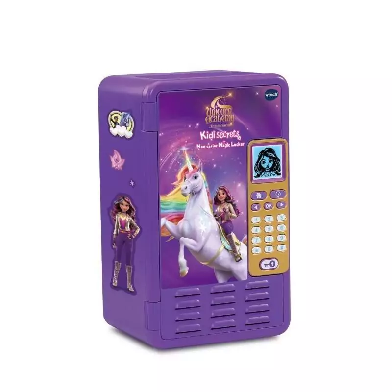 Le casier magique Kidisecrets de VTECH est le compagnon idéal pour les enfants qui aiment les licornes et la magie. Ce casier violet offre une expérience d'apprentissage ludique et interactive tout en garantissant la sécurité des secrets de votre enfant.