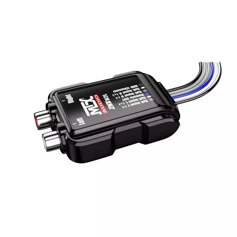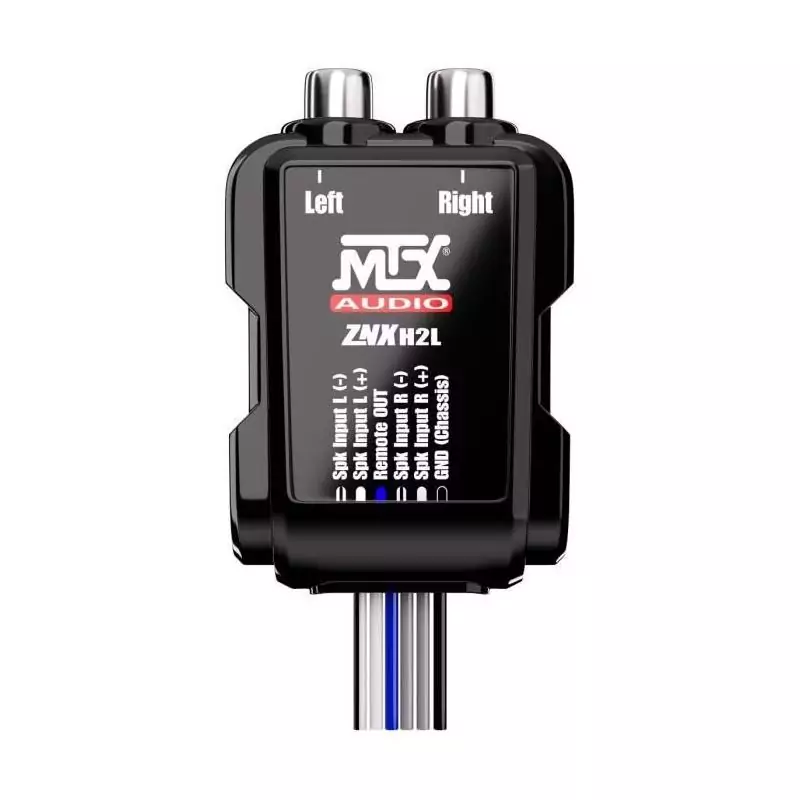 Cet adaptateur MTX AUDIO convertit les câbles HP en sorties RCA 8V. Il dispose d'une sortie Remote OUT et fonctionne sans alimentation +12V, facilitant ainsi l'installation audio dans votre véhicule.