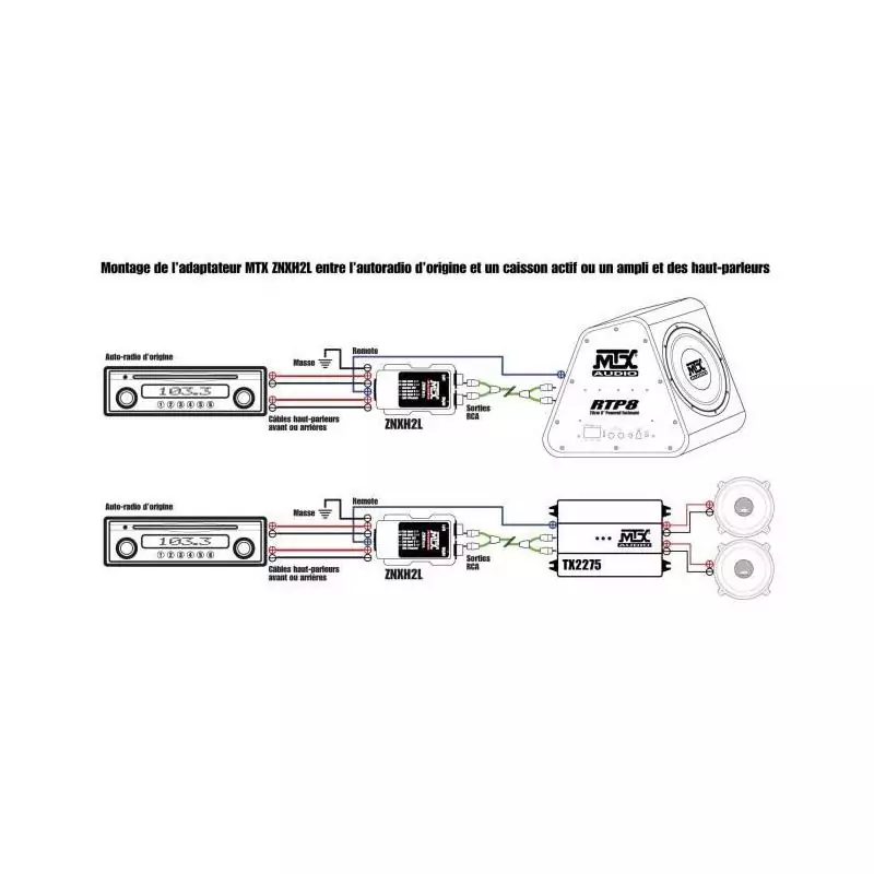 Adaptateur - MTX AUDIO - Câbles HP vers RCA 8V - Sortie ”Remote”