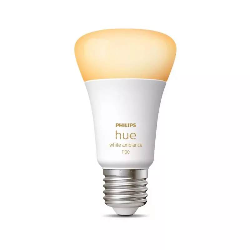 Philips Hue White ambiance A60 - Ampoule connectée E27 - 1100. Type: Ampoule intelligente, Interface: Bluetooth, Couleur du produit: Blanc. Système mobile supporté: Android 10.0, Android 11.0, Android 12.0, iOS 14, iOS 14.5, iOS 15. Classe d'efficacité énergétique: F, Consommation d'énergie par 1000 heures: 8 kWh, Plage d’efficacité énergétique: A à G. Largeur: 60 mm, Profondeur: 60 mm, Hauteur: 110 mm. Type d'emballage: Boîte, Largeur du colis: 7,2 mm, Profondeur du colis: 7,2 mm