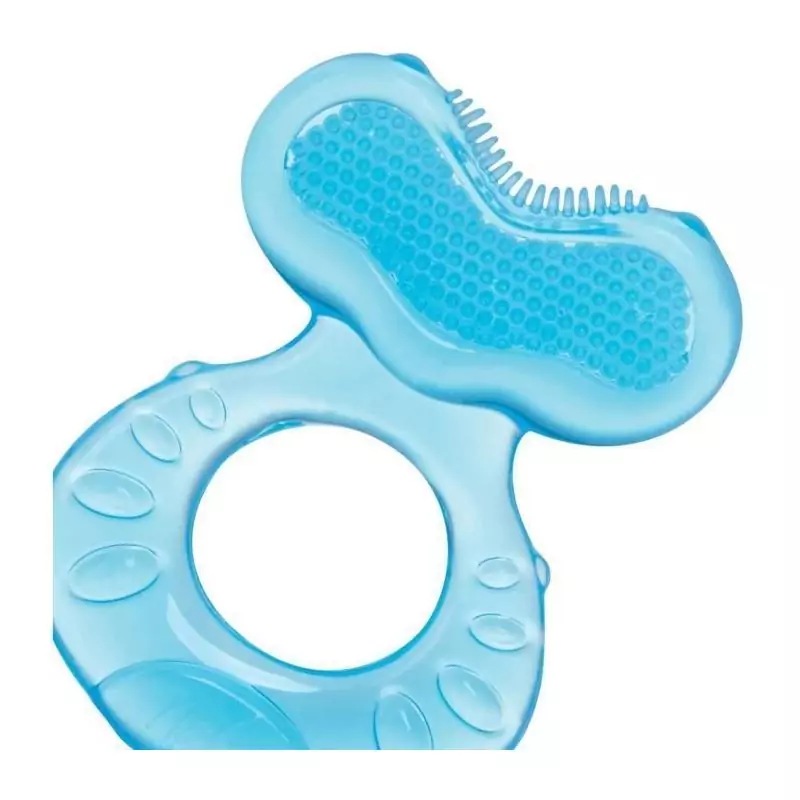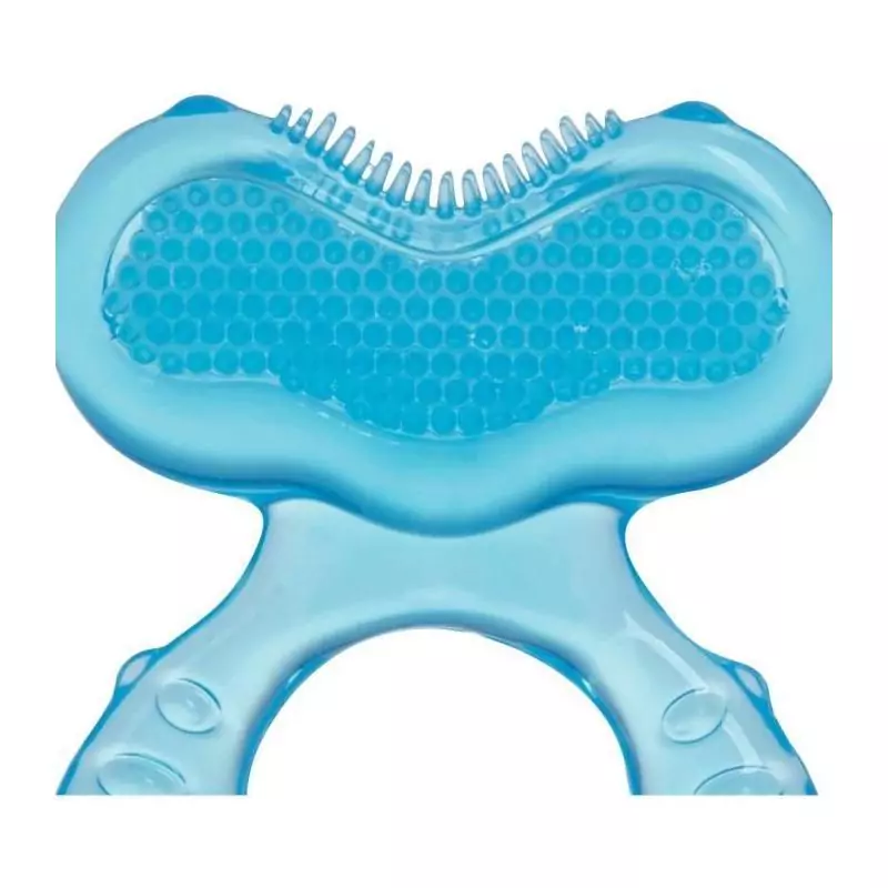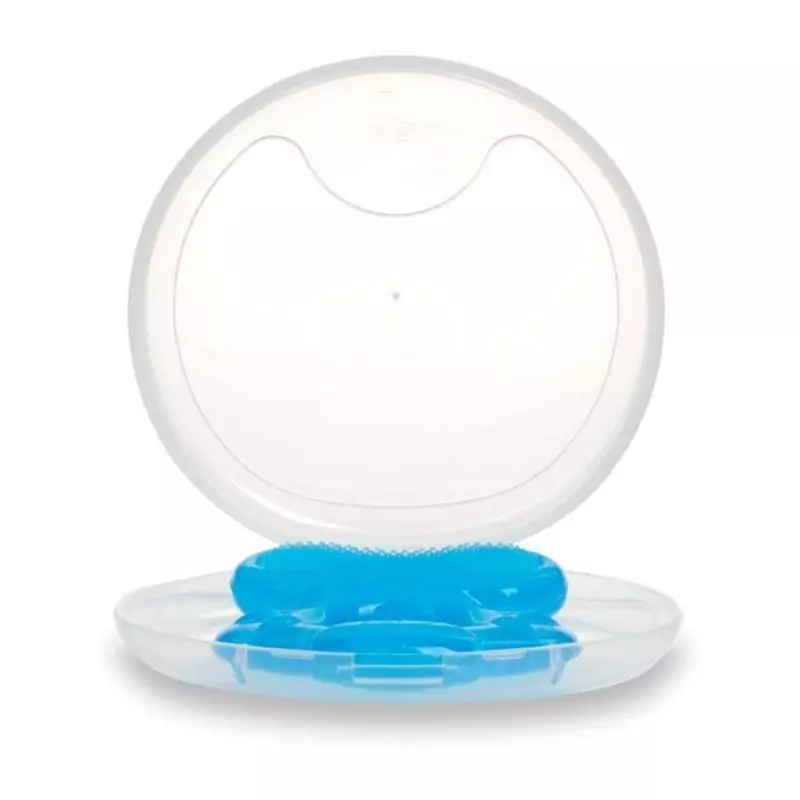 Découvrez l'anneau de dentition NUBY Teethe-eez en silicone bleu, adapté aux bébés dès 3 mois.