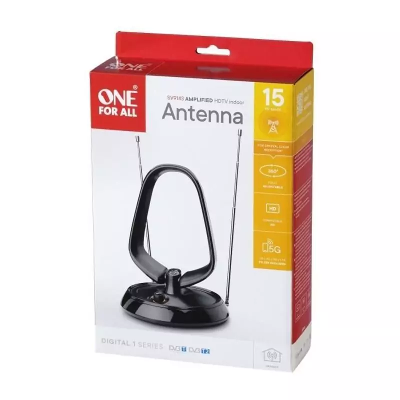 Antenne d'intérieur amplifiée - ONE FOR ALL - Avec portée de réception de 15 km - Excellente réception TNT - Filtre 3G/4G/5