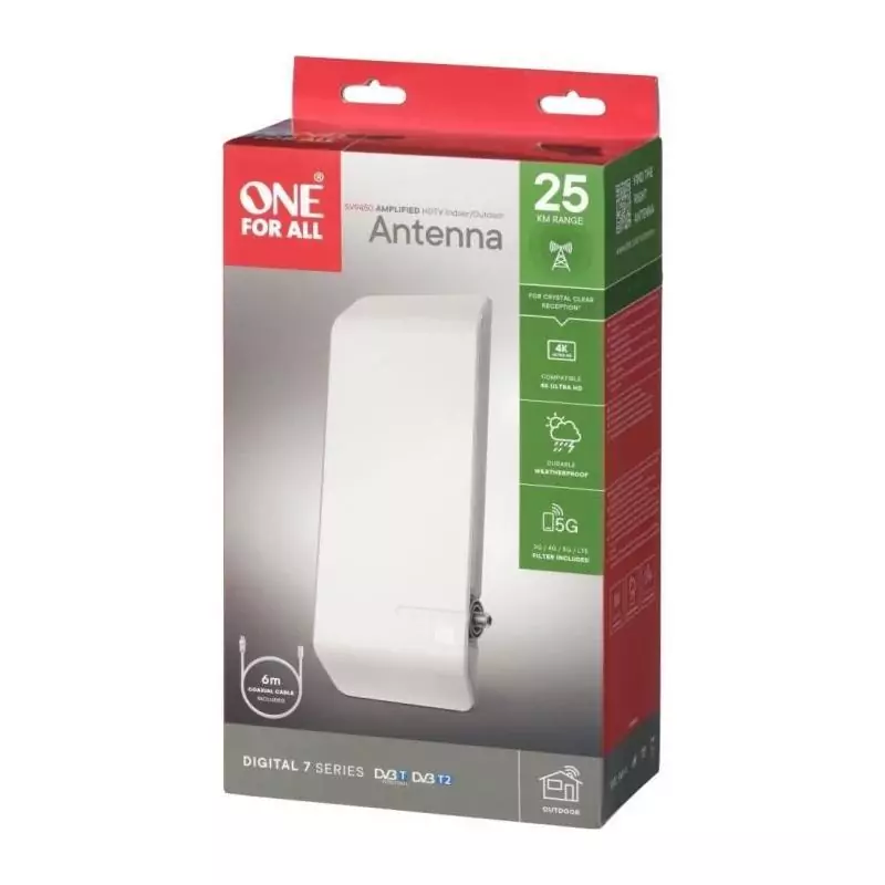 Antenne TV Extérieure amplifiée full HD ONE FOR ALL , filtre 5G, plastique haute qualité