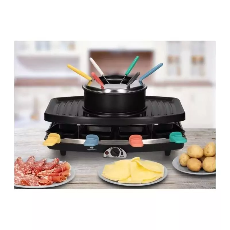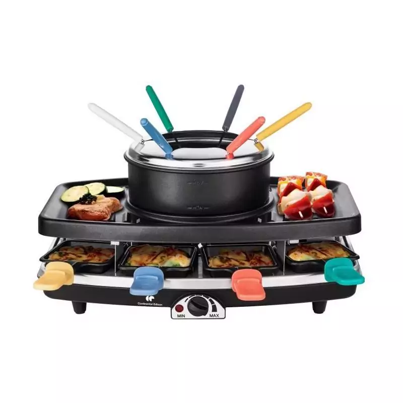 Le CONTINENTAL EDISON CERFG86B est un appareil polyvalent qui vous permettra de préparer des repas conviviaux pour jusqu'à 8 personnes. Avec sa fonction combinée raclette et fondue, vous pourrez varier les plaisirs et satisfaire tous les goûts lors de vos soirées entre amis ou en famille.