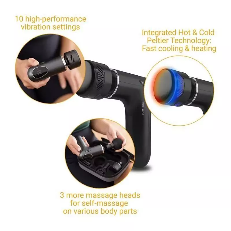 Sa couleur noire élégante et son design ergonomique en font un accessoire moderne et discret que vous pouvez emmener partout avec vous. Profitez des bienfaits d'un massage professionnel dans le confort de votre foyer grâce au pistolet de massage chaud & froid MEDISANA MG 560.