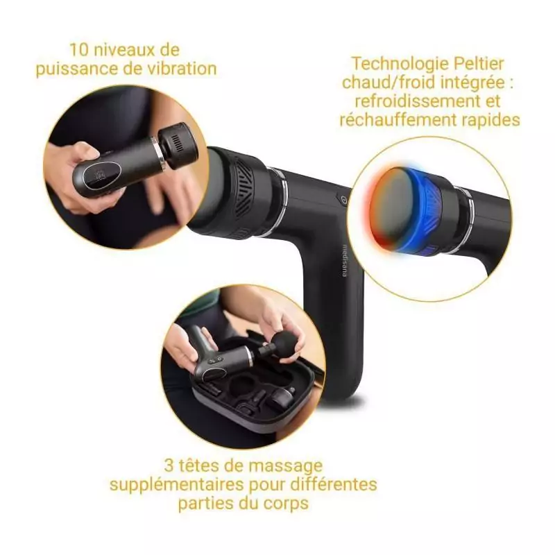 Le pistolet de massage chaud & froid MEDISANA MG 560 est un appareil de massage multifonctionnel conçu pour offrir un soulagement optimal des tensions musculaires et des douleurs corporelles. Avec ses 10 intensités de percussion et ses 3 niveaux de température, cet appareil vous permet de personnaliser votre séance de massage en fonction de vos besoins spécifiques.
