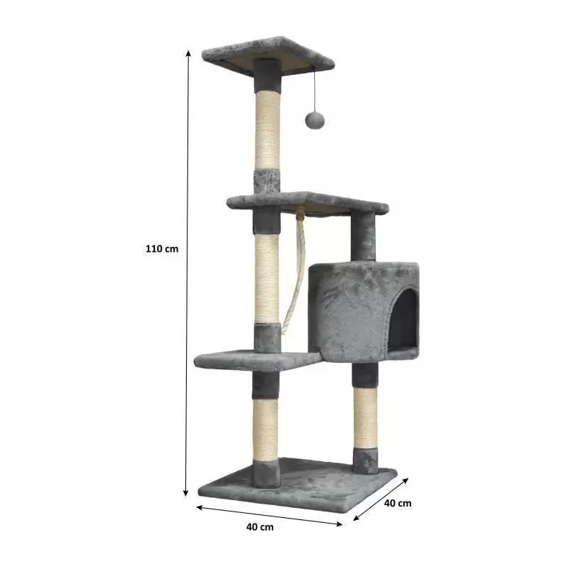 PALOMA Arbre a chat gris foncé 40 x 40 x 114cm - 3 plateformes, 1 corde, 1 niche , poteaux a griffer
