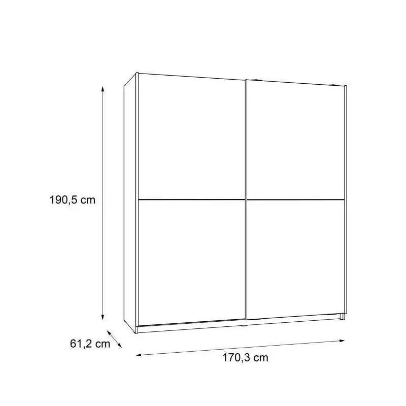 Avec ses dimensions spacieuses de L 170,3 x P 61,2 x H 190,5 cm, cette armoire offre un espace de rangement généreux pour vos vêtements, chaussures et accessoires. Les deux portes coulissantes facilitent l'accès à vos affaires tout en optimisant l'espace disponible dans votre chambre.