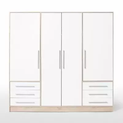 Les 4 portes battantes facilitent l'accès à vos vêtements, draps et autres accessoires, tandis que les 6 tiroirs vous permettent d'organiser efficacement vos effets personnels. Vous pourrez ainsi garder votre espace de vie bien ordonné et harmonieux.