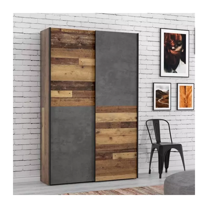 Découvrez notre magnifique armoire 2 portes coulissantes multifonction OZZUL, un meuble à la fois pratique et élégant pour votre chambre à coucher. Fabriquée en panneaux de particules de haute qualité, cette armoire allie à la perfection le bois et le béton gris pour un design moderne et intemporel.