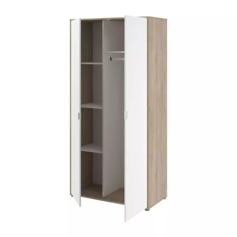 Armoire de chambre AALBORG - Décor Blanc et chene - 2 portes battantes - L100 x P50,2 x H204,3 cm - PARISOT