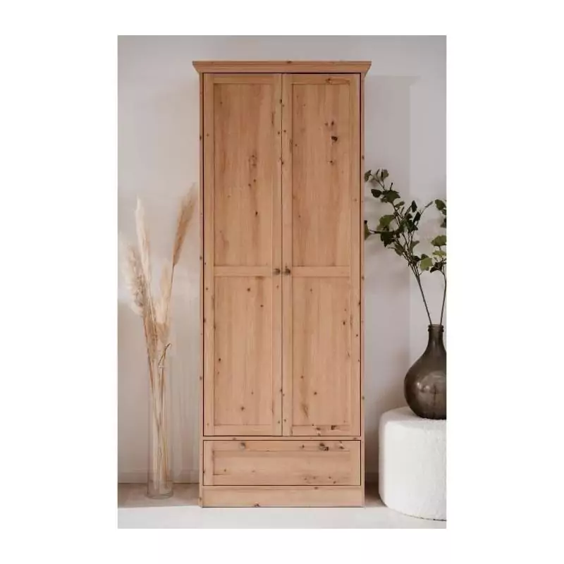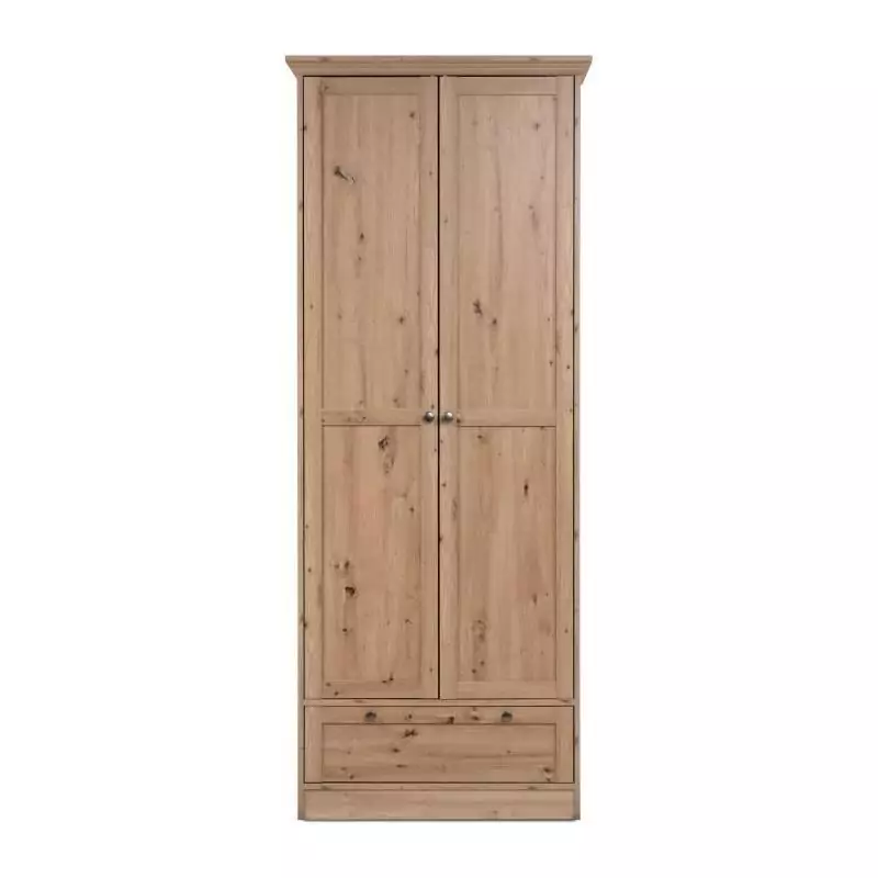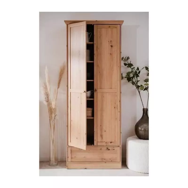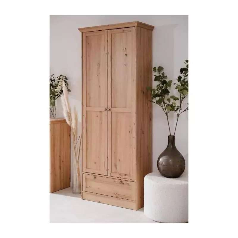 Armoire - Landwood - Décor chene artisan - 2 Portes - 1 Tiroir - L80 x P39 x H200 cm
