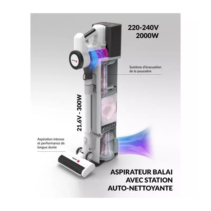 Aspirateur balai sans fil 2 en 1 - FAGOR - FG6415 - 300W - Avec base auto nettoyante - Tube Flexible - 3 vitesses - Autonomie 60