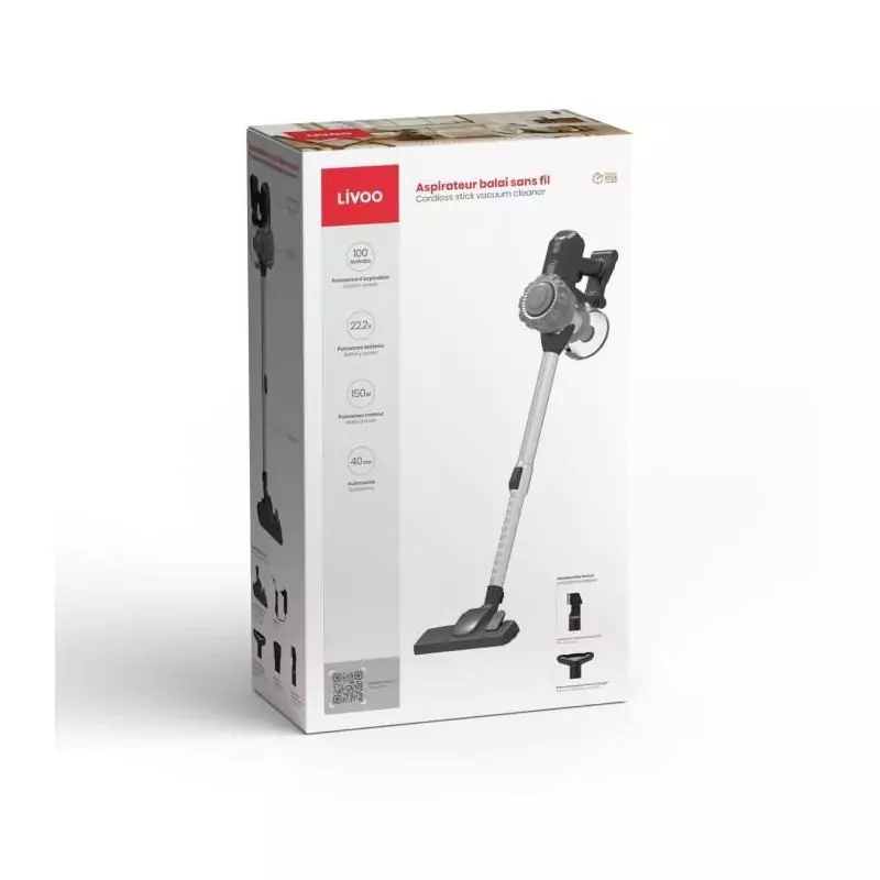 L'aspirateur balai sans fil LIVOO DOH141 est l'allié indispensable pour un nettoyage efficace de votre intérieur. Avec une puissance de 150 W et une capacité d'aspiration de 10 KPa, il élimine en profondeur la saleté et les poussières pour vous offrir un environnement propre et sain.