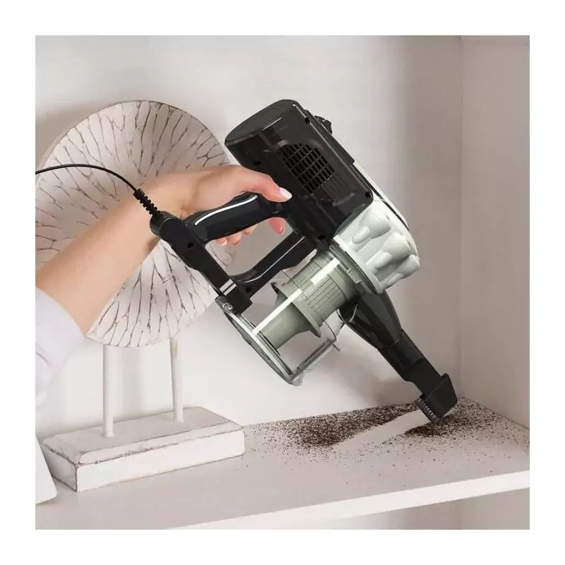 Grâce à sa technologie cyclonique, cet aspirateur balai filaire offre une performance supérieure en capturant efficacement la poussière et les saletés. Sa capacité de 0,55 L vous permet de nettoyer de grandes surfaces sans avoir à vider le réservoir fréquemment.