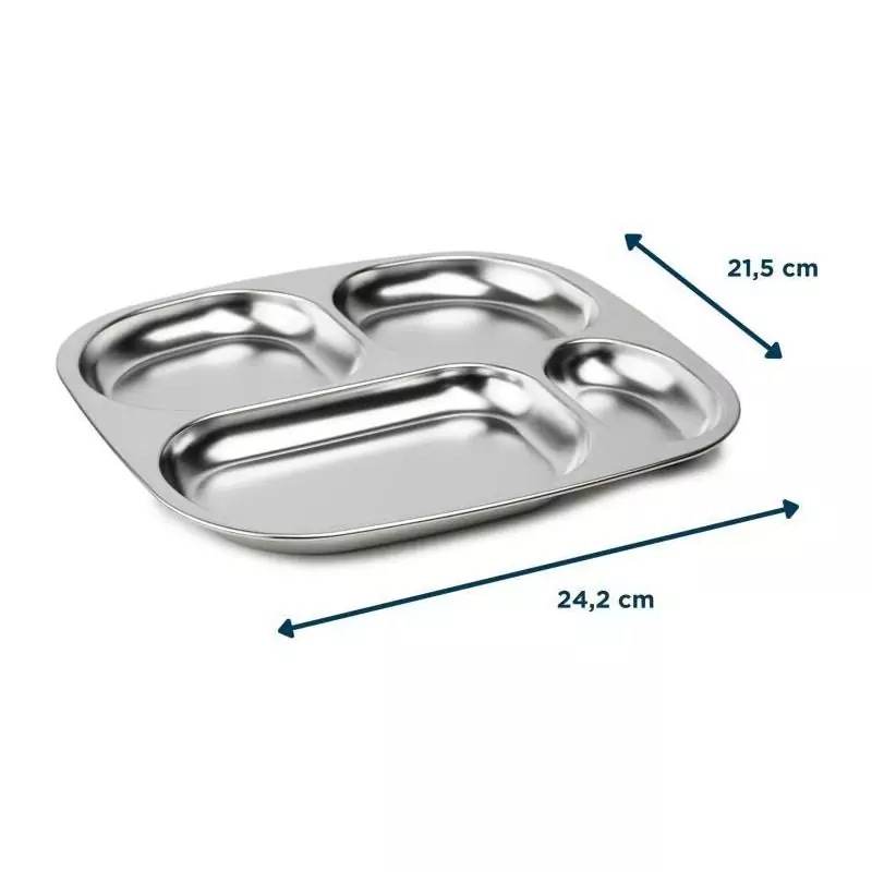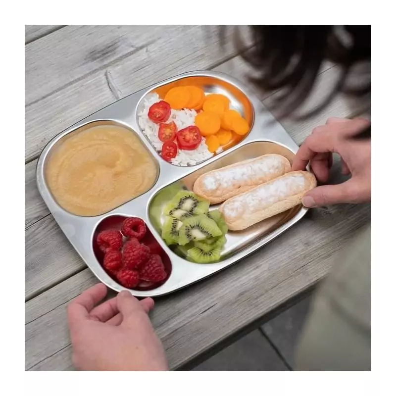 Le plateau compartimenté THERMOBABY est l'accessoire idéal pour les repas de bébé. Avec ses 4 compartiments pratiques, il permet de séparer les aliments et de les présenter de manière ludique. Fabriqué en acier inoxydable, ce plateau est robuste et durable. De plus, il est garanti sans BPA, assurant la sécurité de votre enfant.