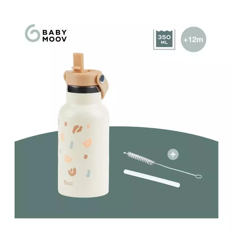 Babymoov - Gourde Enfant Isotherme 350ml - Anti Fuites - Paille Intégrée - Garde 12h au Frais et 6h au Chaud - 2e Paille Inclu