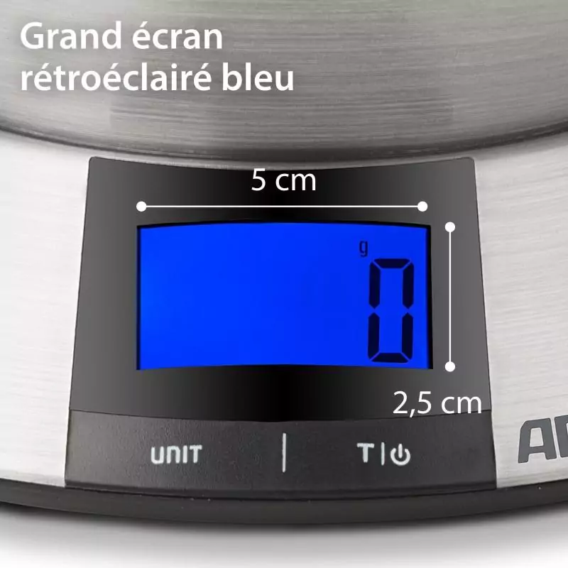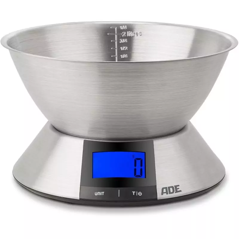 Balance de cuisine digitale - ADE - HANNA - Acier inoxydable/Plastique - 23 x 16,5 cm- Inclus 3 piles AAA