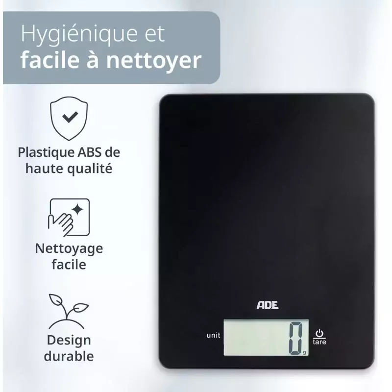 Balance de cuisine digitale - ADE - LEONIE - Plastique ABS - 22 x 17 cm - Inclus 1 pile Cr 2032 - Noir