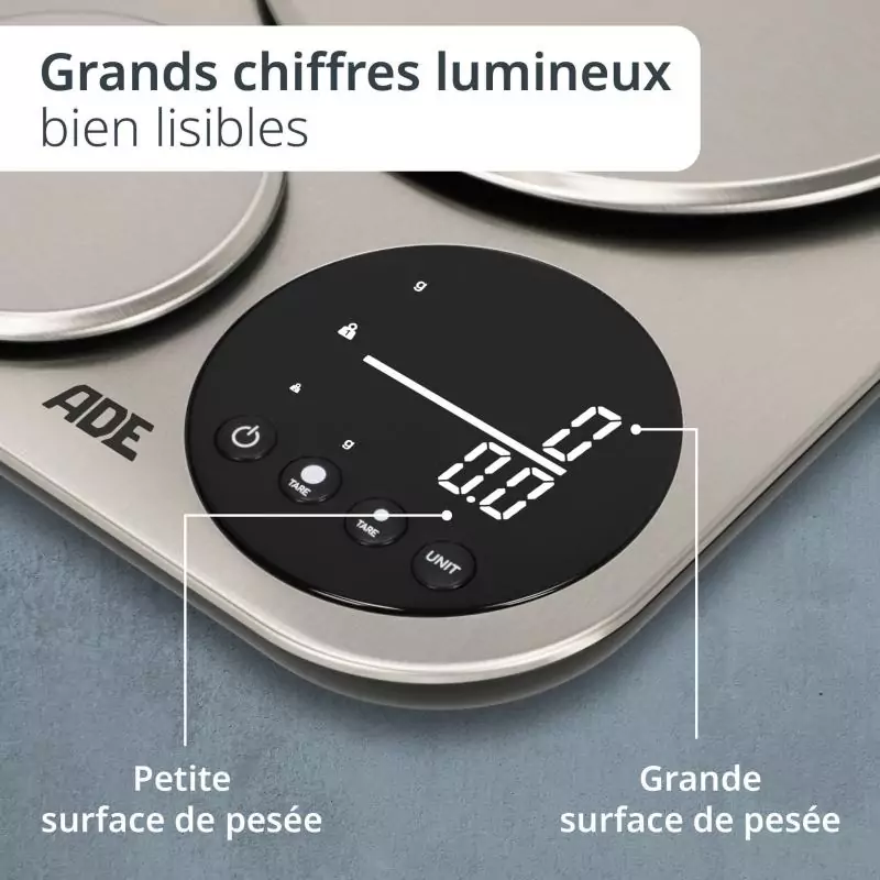 Balance de cuisine duo digitale - ADE - ISABELLA - Acier inoxydable/Plastique - 23x16,5 cm - Inclus 3 piles AAA