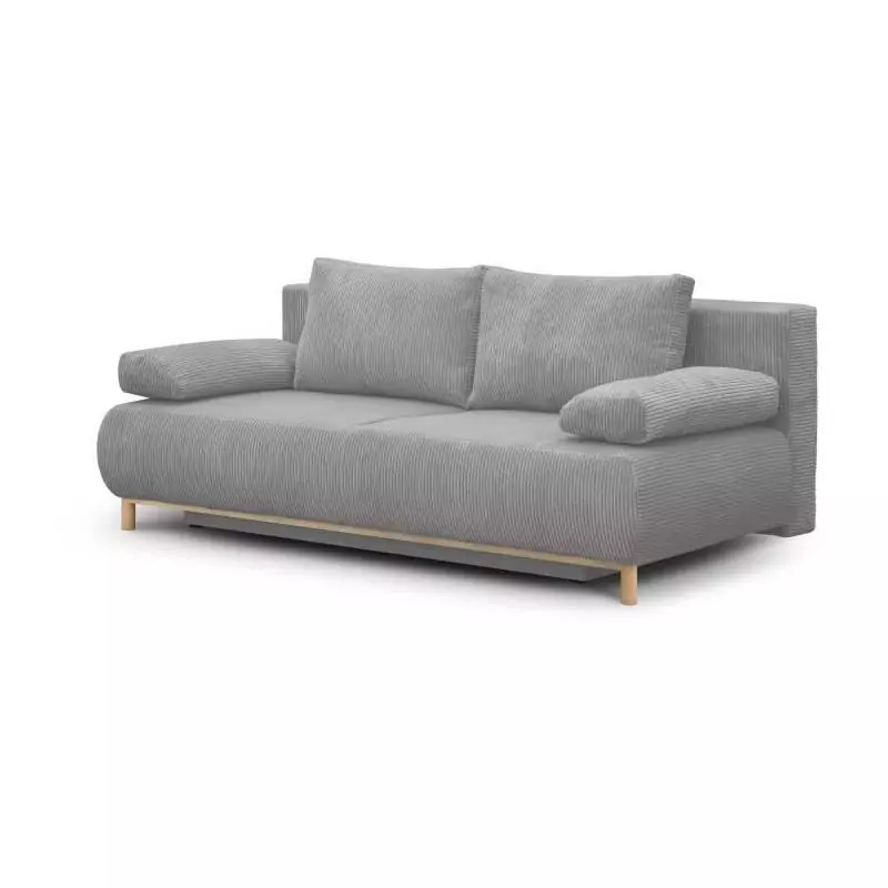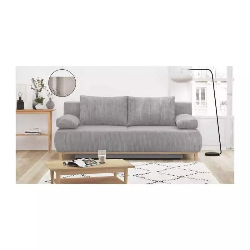 La banquette convertible 3 places MIKA apportera une touche de modernité et de sophistication à votre intérieur. Revêtue d'un élégant velours côtelé gris clair, elle s'intégrera parfaitement dans tous les types de décoration.