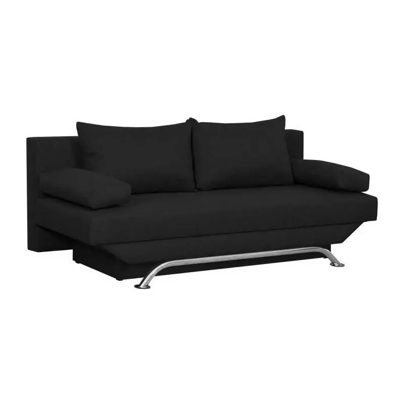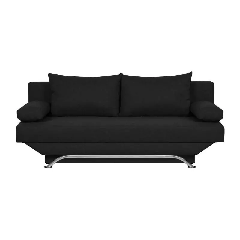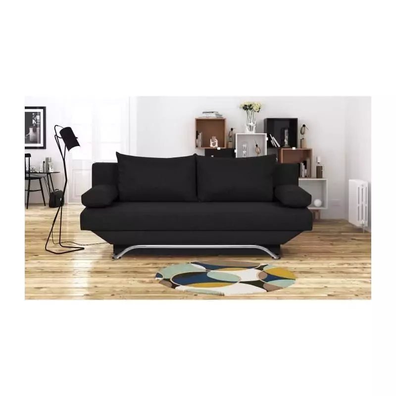 Banquette convertible 3 places avec coffre de rangement - Tissu Noir - L187 x P 91 x H 82 cm - TEIJO