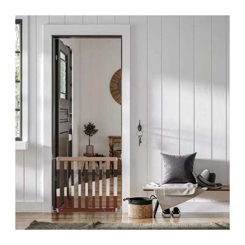 La barrière de sécurité pour enfant INGENUITY, d'une largeur ajustable de 76 à 91 cm, est un choix parfait pour protéger votre petit explorateur des dangers potentiels à la maison. Cette barrière est non seulement efficace pour bloquer les accès aux escaliers ou aux zones dangereuses, mais elle est également personnalisable grâce à sa possibilité unique d'être peinte ou teinte selon vos préférences de décoration intérieure.