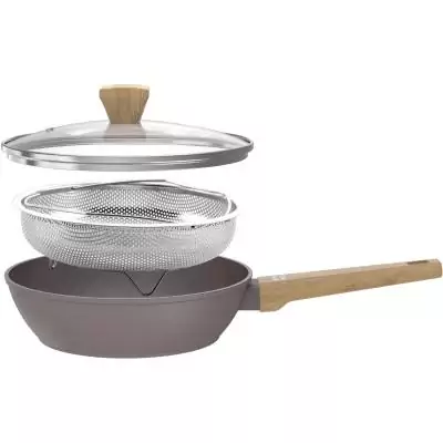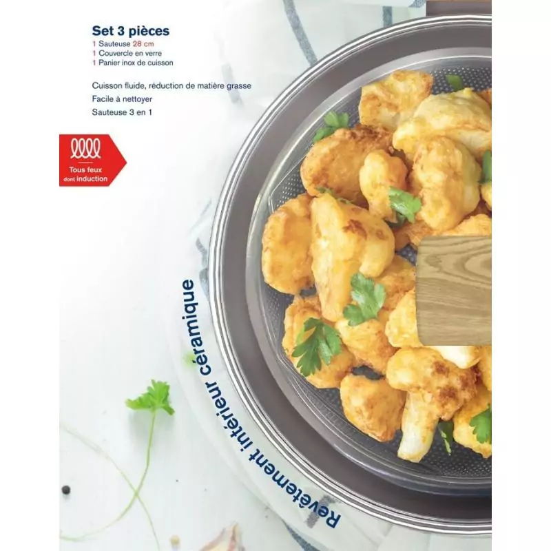 Sauteuse - Tous feux dont induction - ARTHUR MARTIN - AM9910 - Revetement céramique - Ø 24 cm - Couvercle et panier inox - Tau