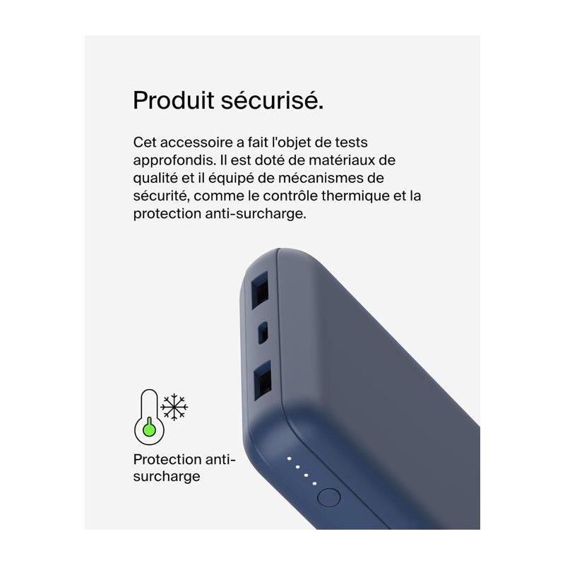 Batterie externe - BELKIN - 20 000 mAh - USB-A & USB-C - 15 W - Bleu