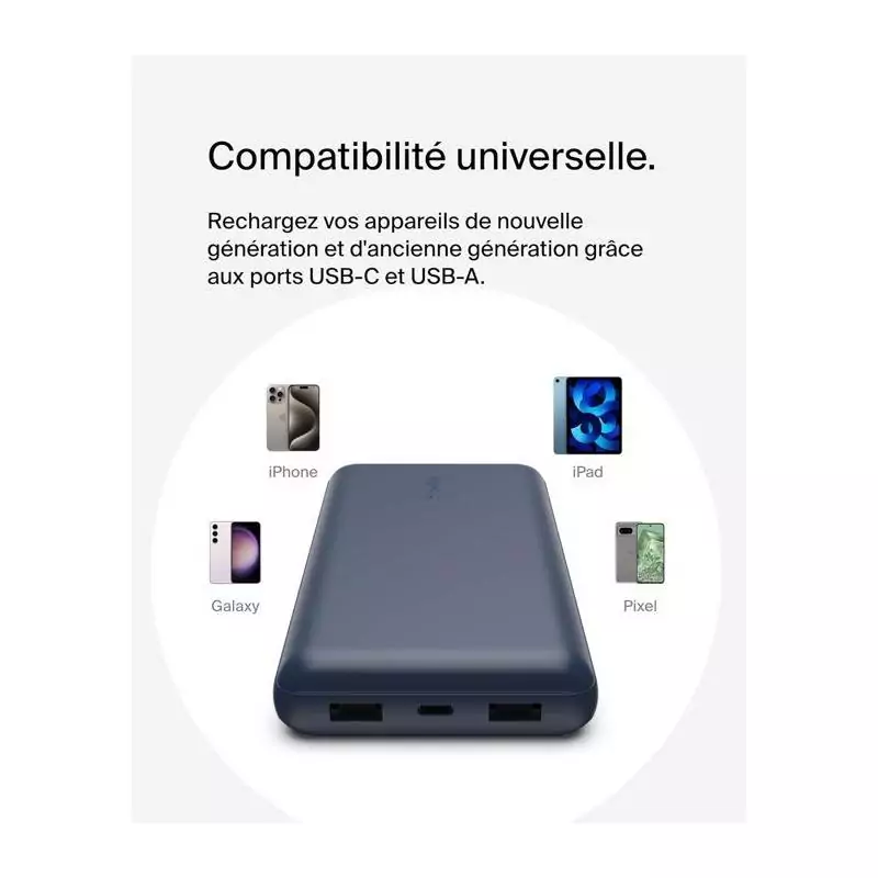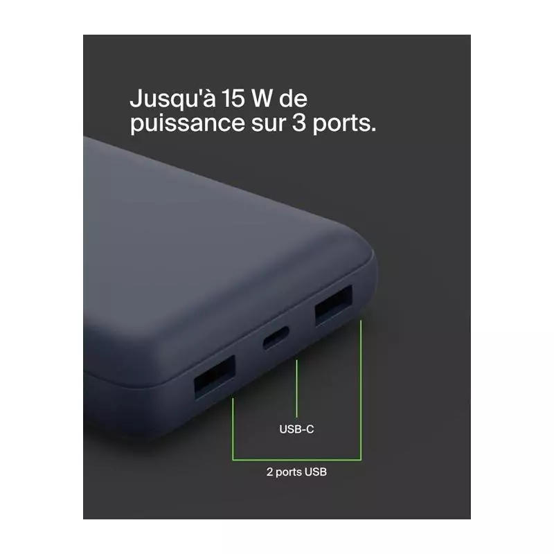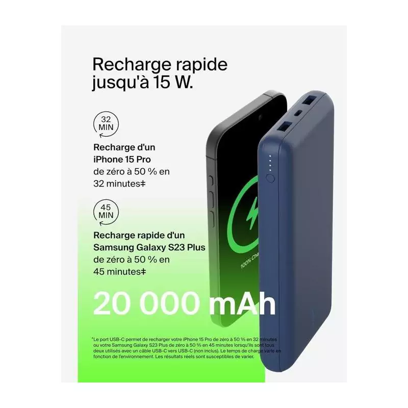 Batterie externe - BELKIN - 20 000 mAh - USB-A & USB-C - 15 W - Bleu