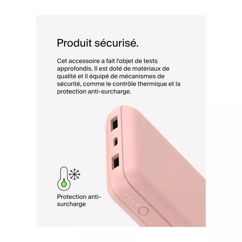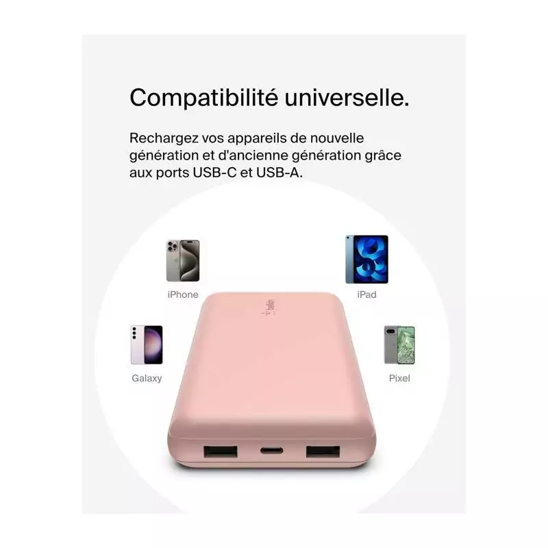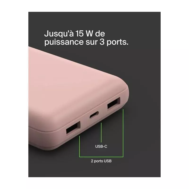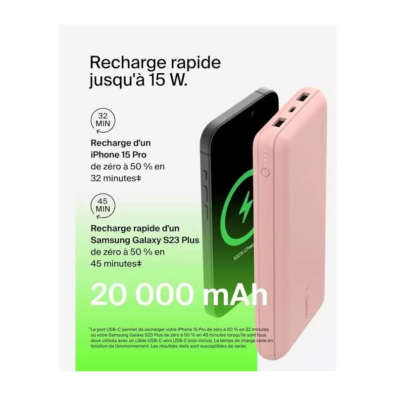 Batterie externe - BELKIN - 20 000 mAh - USB-A & USB-C - 15 W - Rose