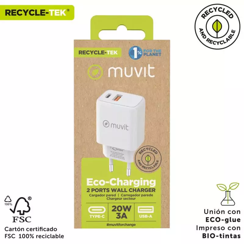 Chargeur mural Muvit for Change Blanc 18 W 20 W