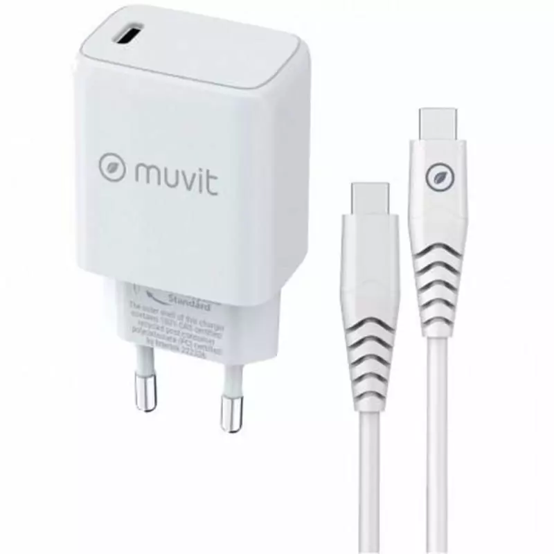 Chargeur Mural Câble USB-C Muvit Blanc 20 W