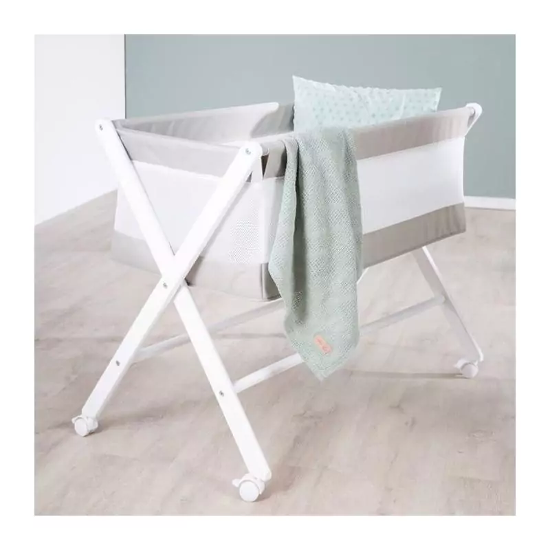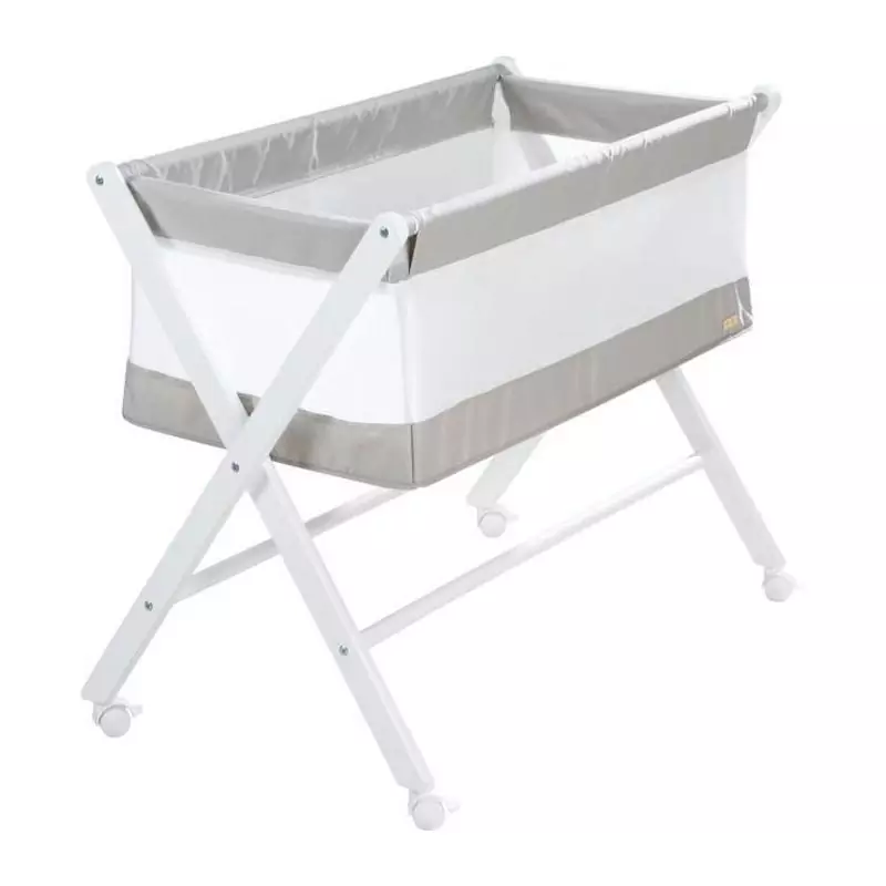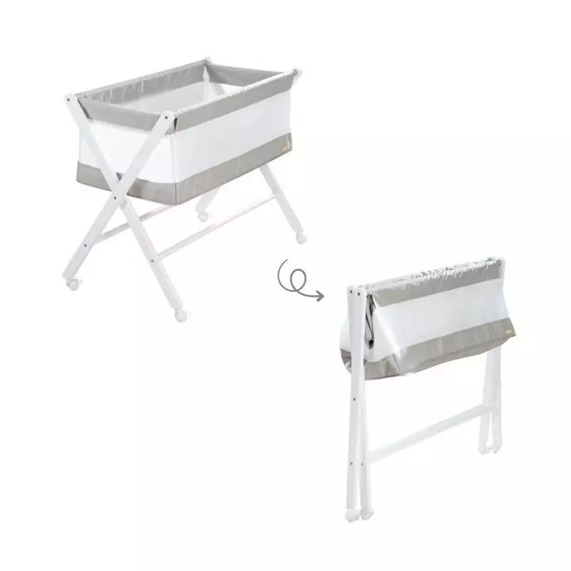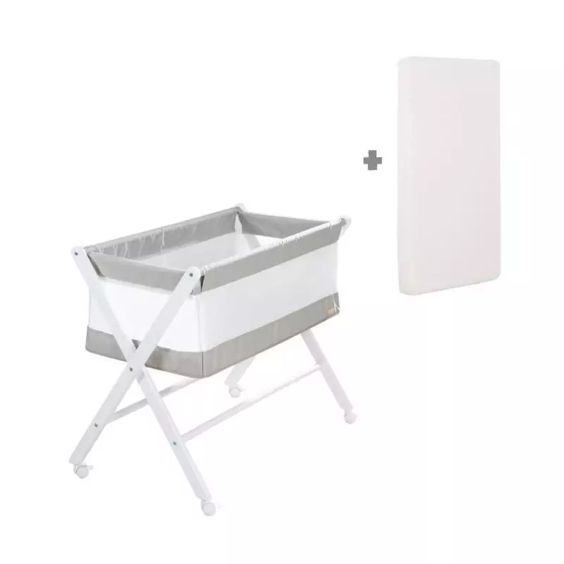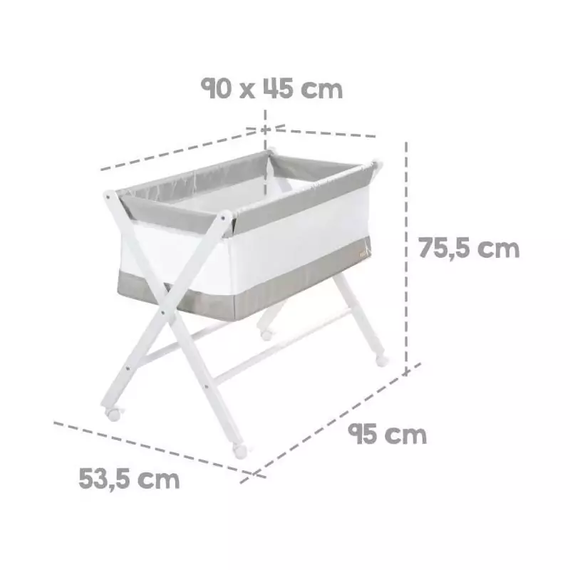 Berceau Cododo Pliable - ROBA - Toile et maille - Matelas et roulettes a freins - 90 x 45 cm - Gris / Blanc