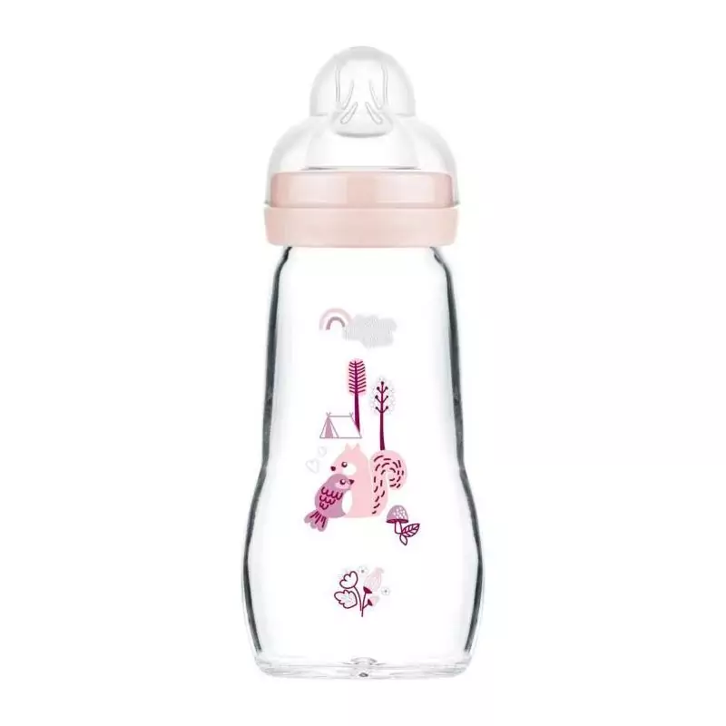 Biberon en verre MAM - Tétine Débit 2 Moyen - Rose