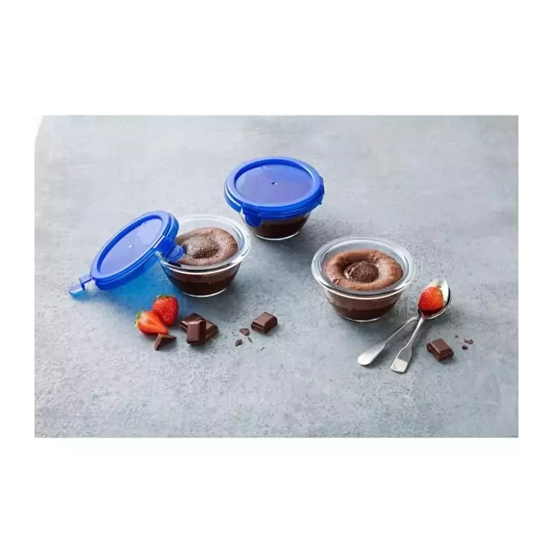 Lot de 5 mini bols - PYREX - Cook & Go - Verre - Rond - Couvercle étanche - 0,2 L