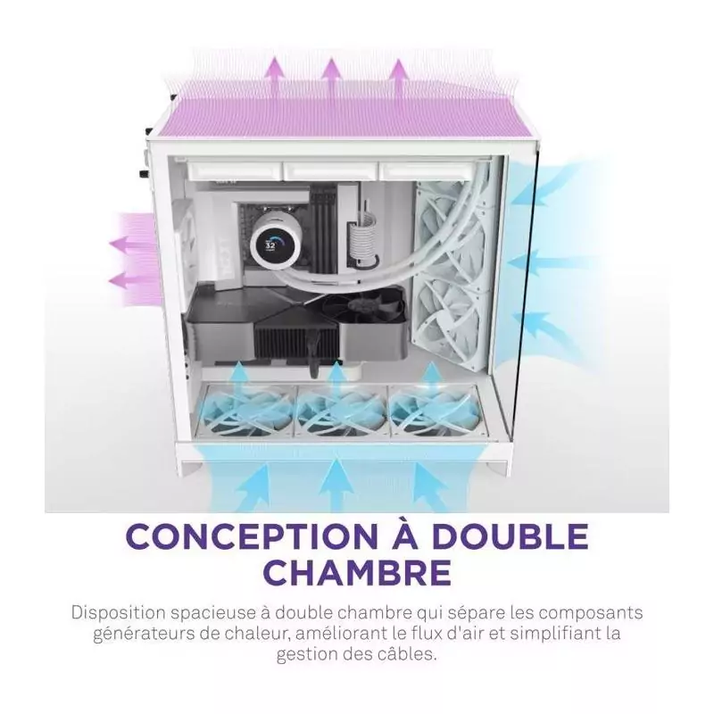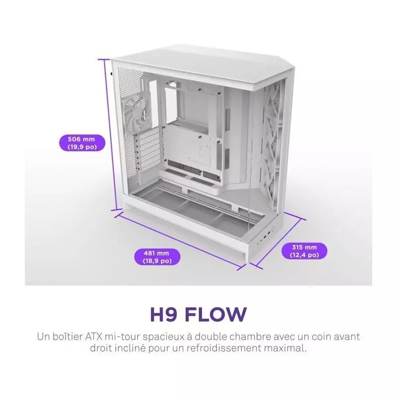 Boitier moyen-tour - NZXT - CM-H92FW-01 - H9 Flow - Double chambre - Panneaux mesh - Verre trempé