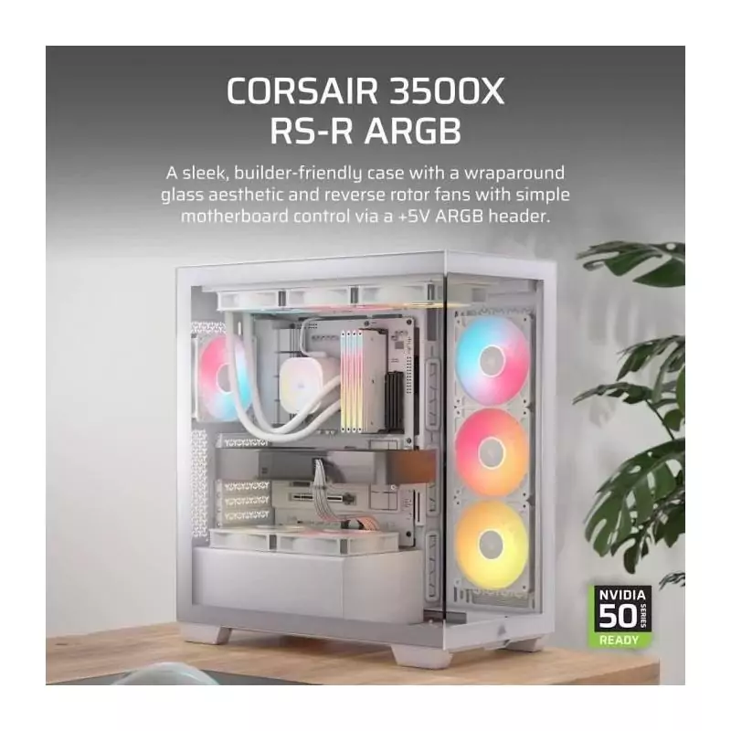 Boitier PC - CORSAIR - 3500X RSR ARGB Tempered Glass Mid-Tower - 3 ventilateurs ARGB a rotor inversé - Blanc