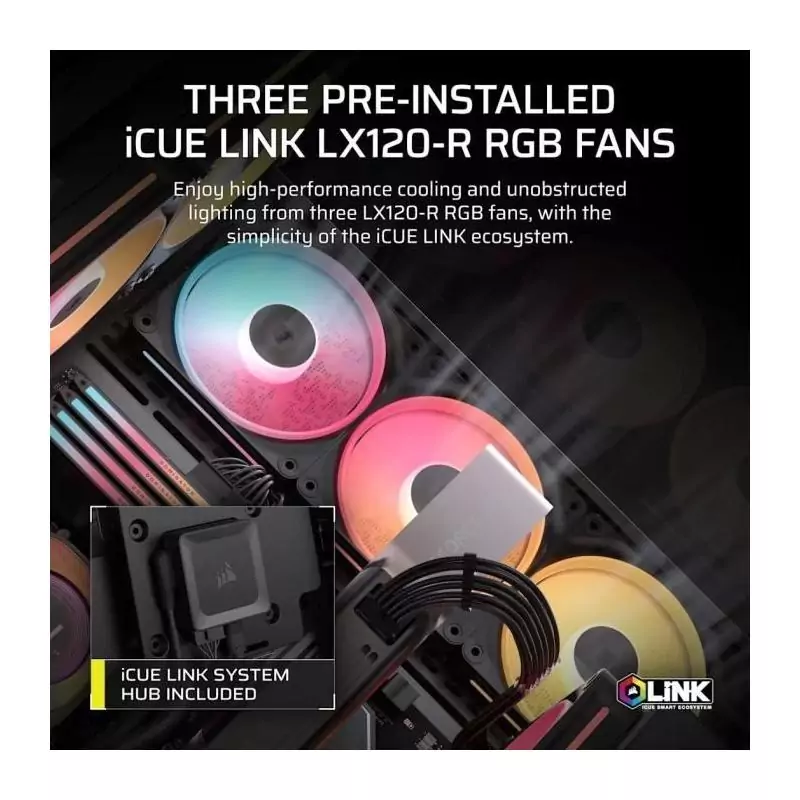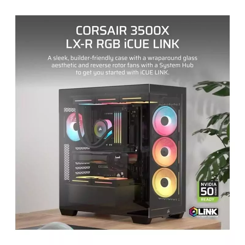 Boitier PC - CORSAIR - 3500X LXR LINK Tempered Glass Mid-Tower - 3 ventilateurs RGB a rotor inversé - Noir