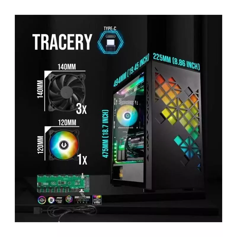 Boitier PC sans alimentation - BITFENIX Tracery ARGB (Noir) - Moyen tour - Format E-ATX