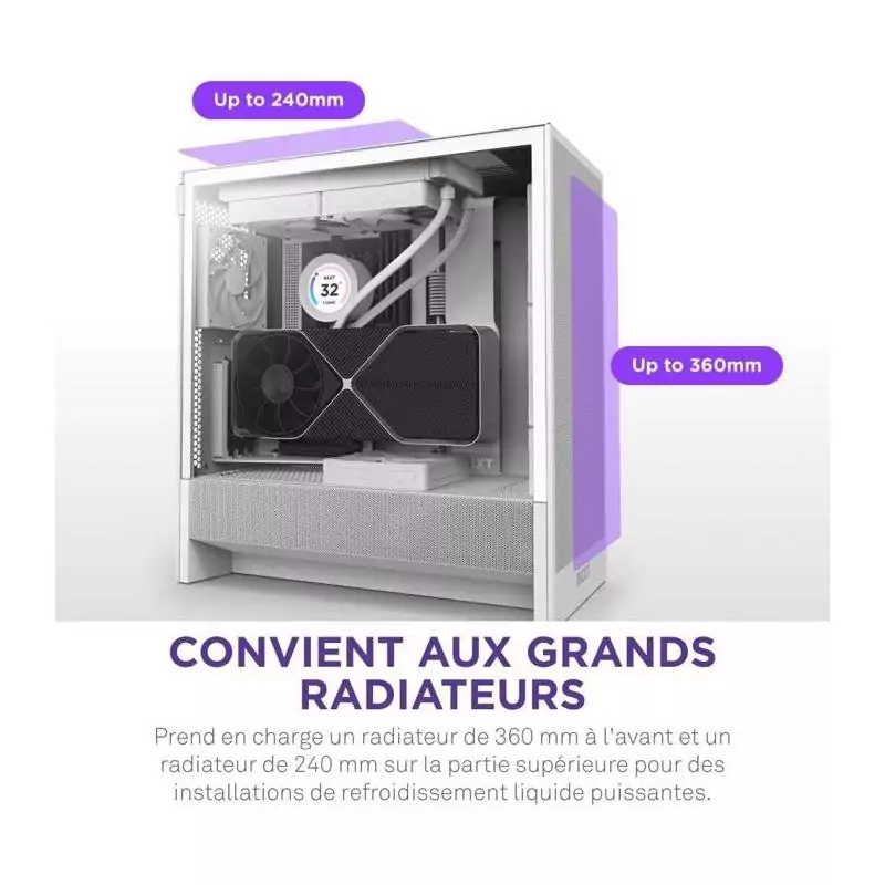 Le boitier moyen-tour compact ATX NZXT CC-H52FW-01 H5 Flow en blanc est un choix idéal pour les amateurs de PC à la recherche d'un boitier élégant et performant. Avec son design épuré et moderne, ce boitier offre non seulement un look esthétique, mais aussi des fonctionnalités avancées pour une expérience de jeu optimale.