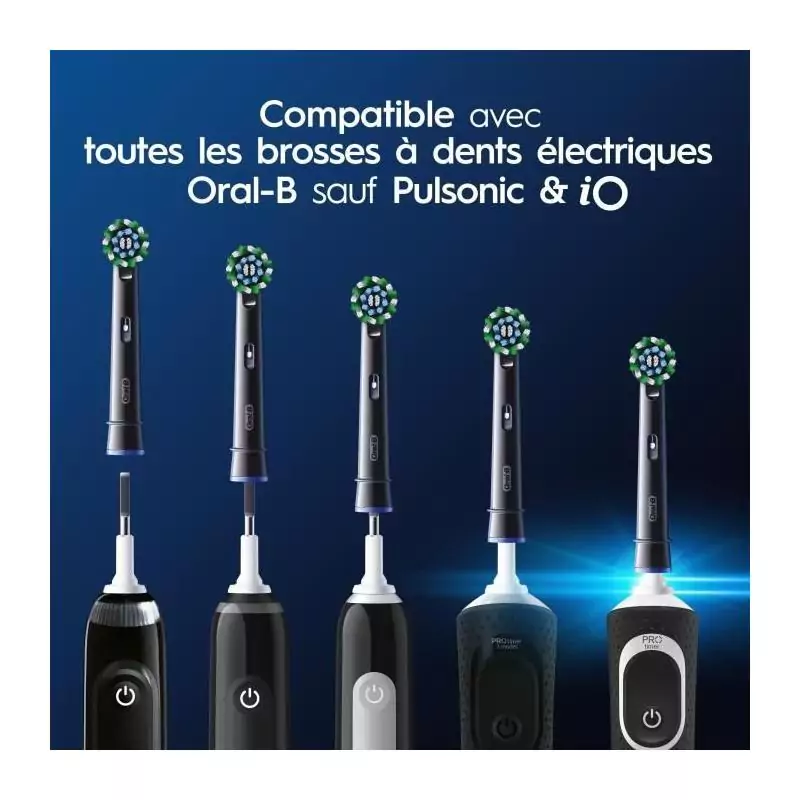 Offrez à votre bouche une propreté maximale avec les brossettes Oral-B Cross Action Pro en noir.