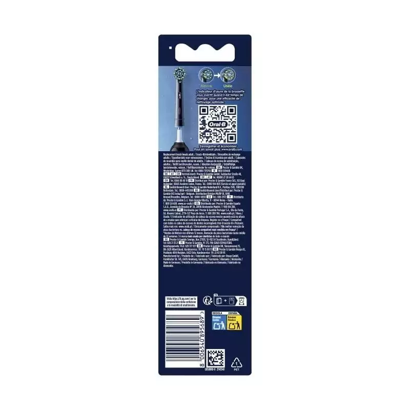 Ces brossettes de rechange sont conçues pour s'adapter parfaitement aux brosses à dents électriques Oral-B et offrir un nettoyage en profondeur. Leur conception unique en croix permet d'éliminer jusqu'à 100% de plaque dentaire en plus par rapport à une brosse à dents manuelle classique.