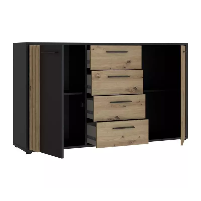 Voici notre superbe Buffet CARDIGAN 2 portes, 4 tiroirs qui allie à la perfection élégance et fonctionnalité. Avec son design sophistiqué en décor chêne artisan et noir, il apportera une touche de modernité à votre intérieur. Ses dimensions de L142,6 x P34,2 x H82,3 cm en font un meuble parfait pour optimiser l'espace de votre salle à manger ou salon.